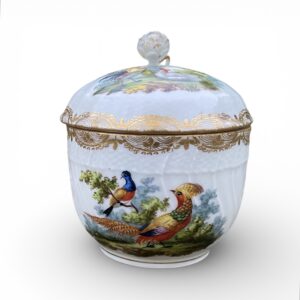 Kusnetzoff pottery cup, cover and stand, c. 1890.