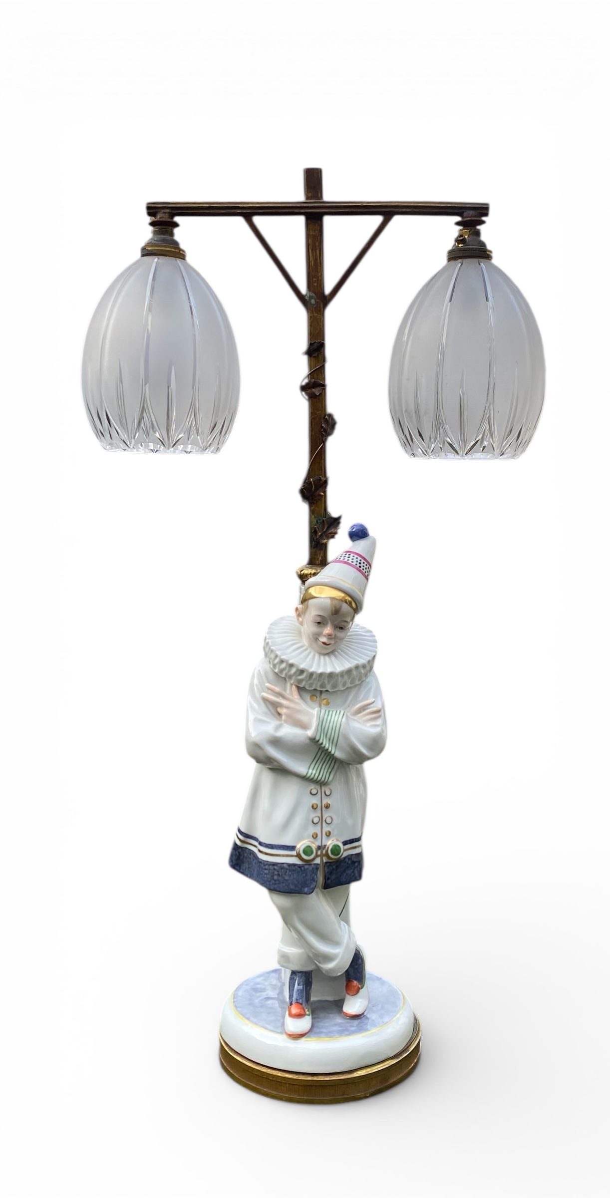 Karl Ens porcelain Pierrot and bronze lamp, c. 1920.