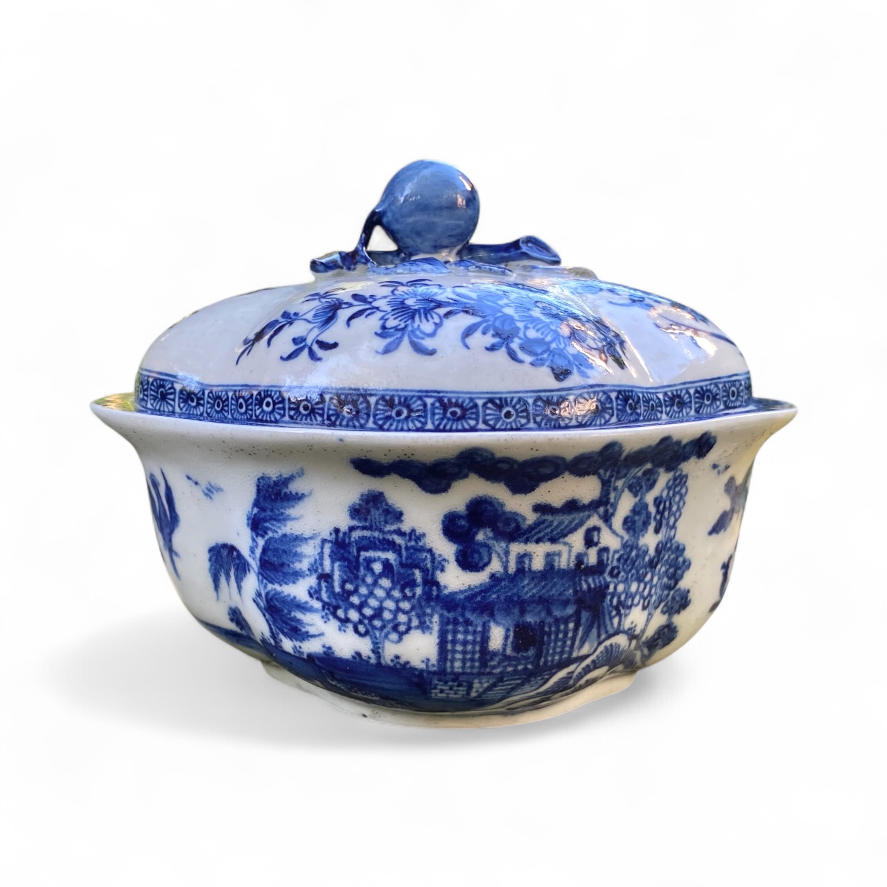 Rare Derby blue and white porcelain tureen, c. 1760.