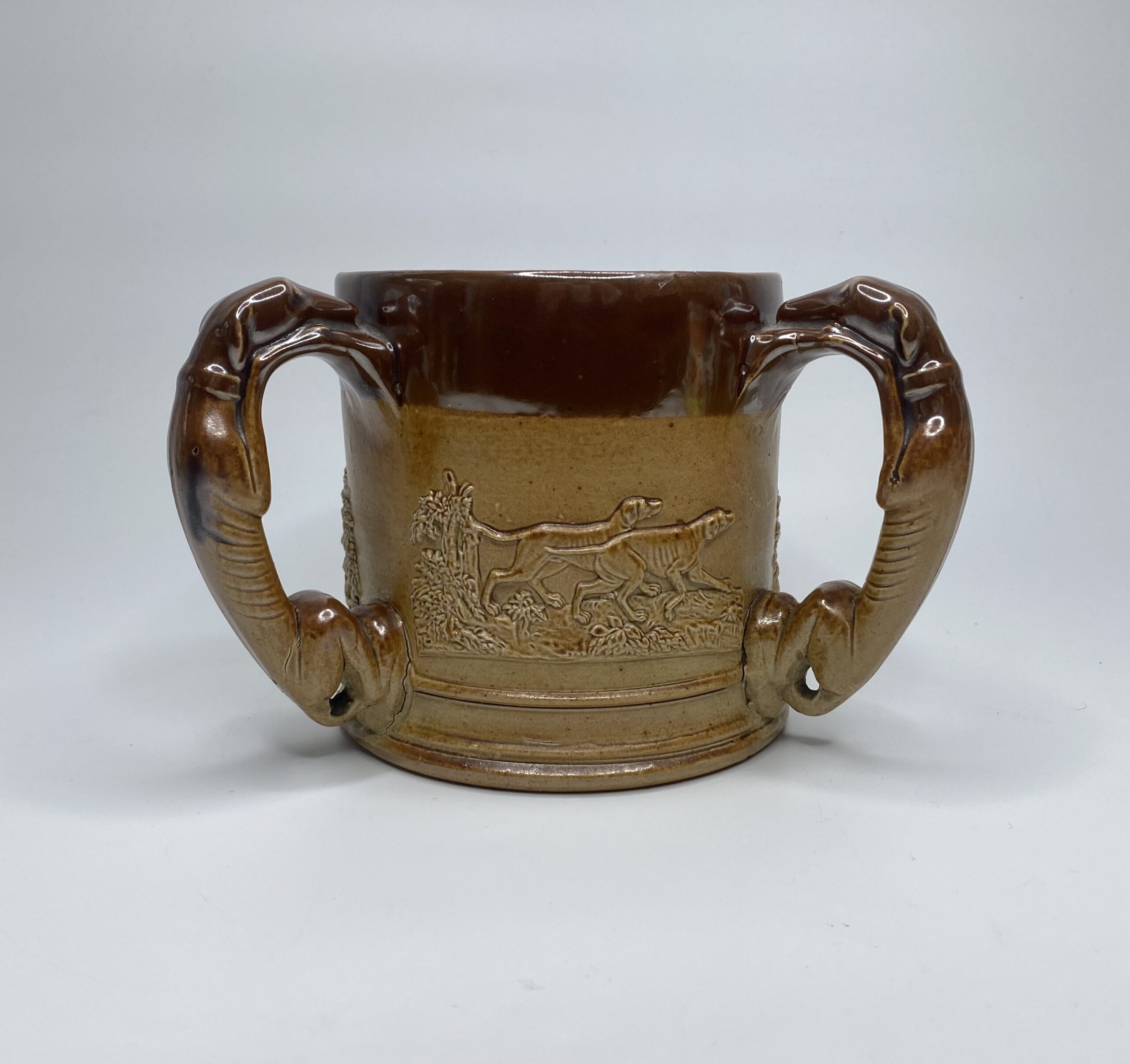 English Saltglaze Stoneware Tyg, Hunting scenes, c. 1840.