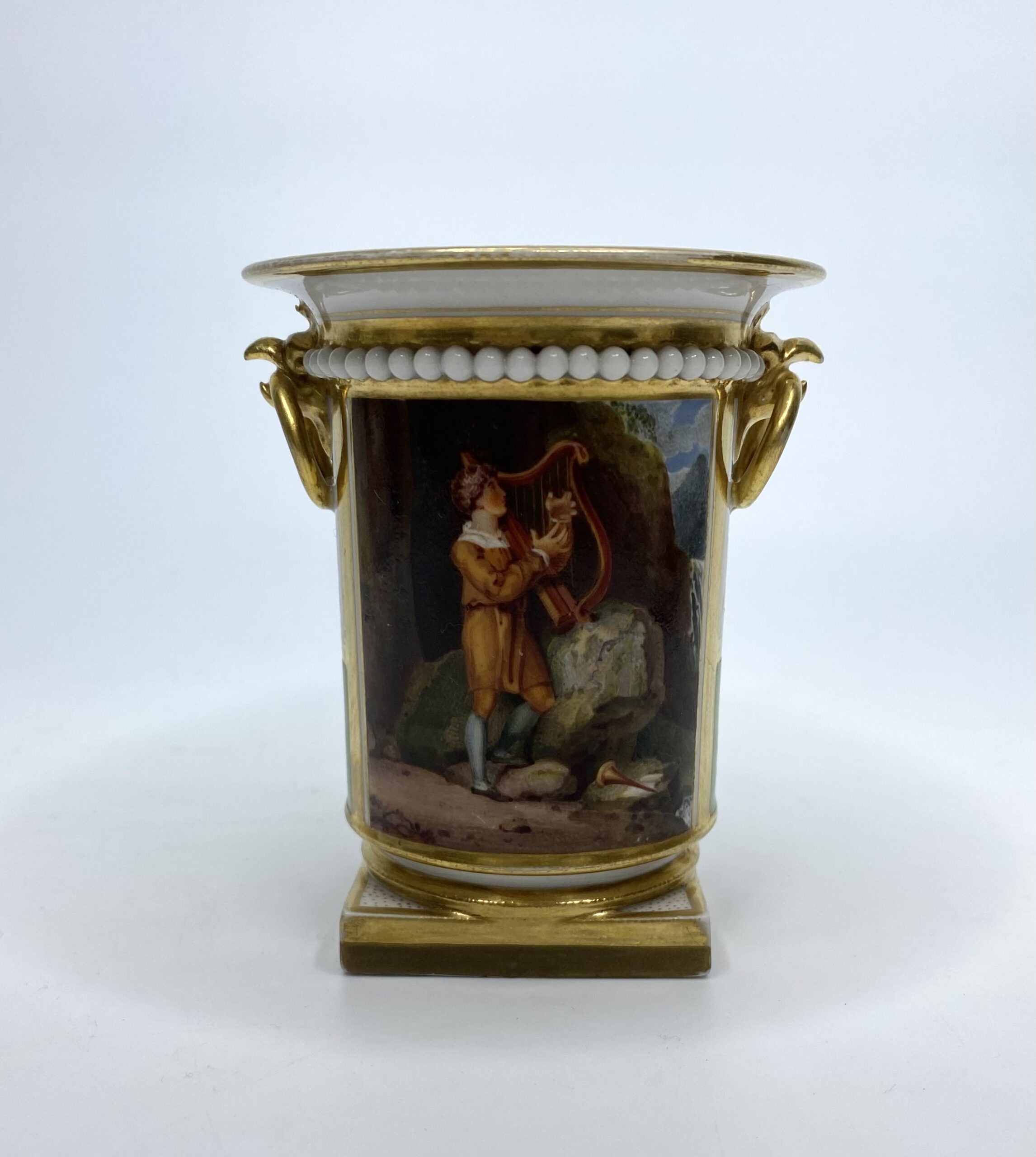 Flight, Barr and Barr Worcester porcelain vase, c. 1815. Painted in the manner of Thomas Baxter, with a youth, playing a harp before rocks, in a landscape.